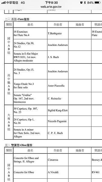長笛各組指定曲:(第一首為此次抽籤指定曲)